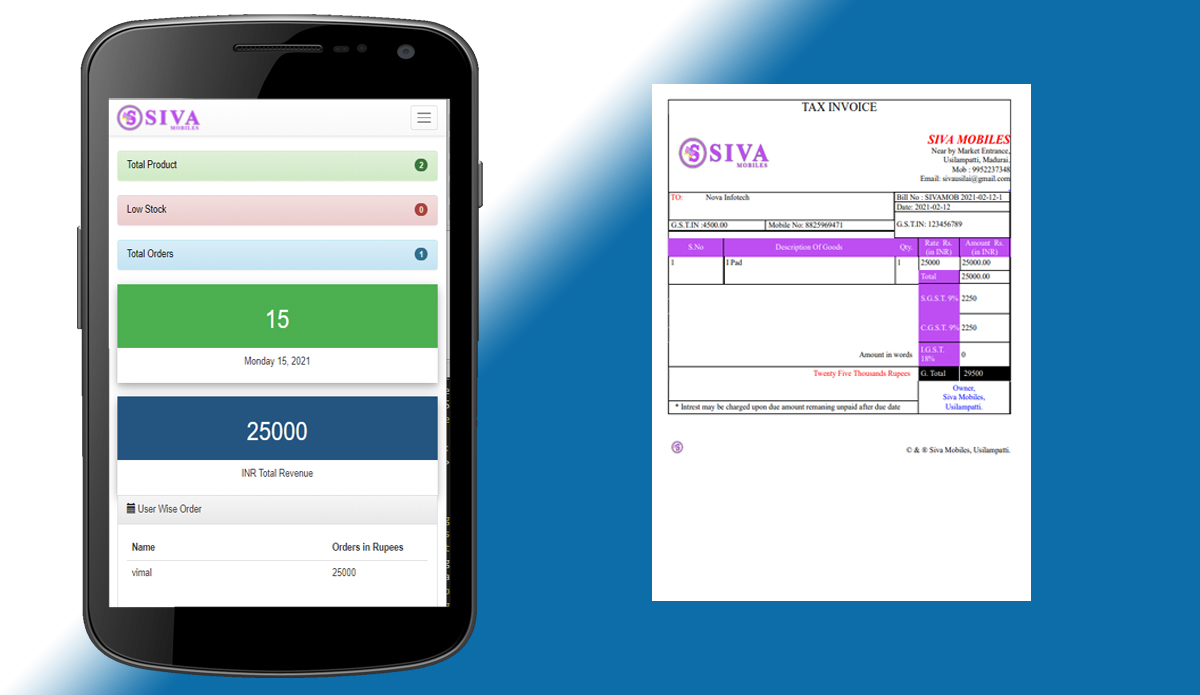 Siva Mobiles is one of the largest and popular mobile showroom and accessories center in Usilampatti. They provide Mobile sales and services in their shop. Nova Infotech provides a web application to manage their inventory details and to make invoice with ease in manner at very low cost.